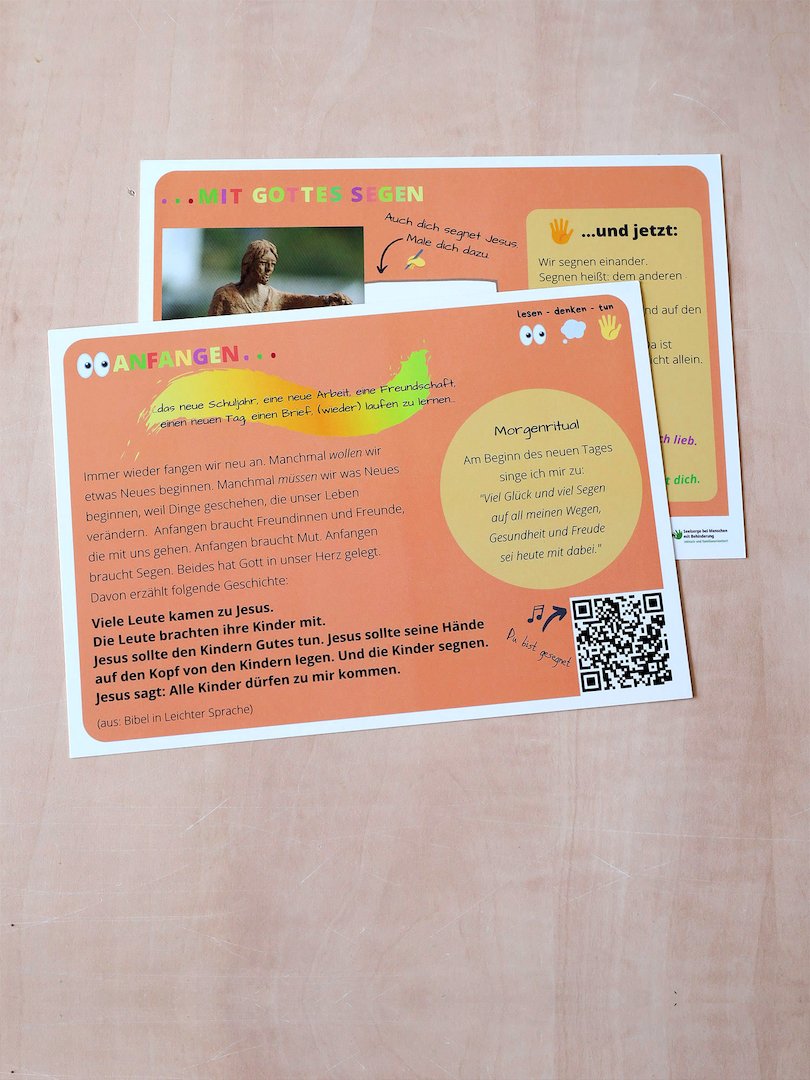 Zu den verschiedensten kirchlichen Feiertagen gibt es Impulskarten, die sich besonders für Familien, aber auch für Ministrantengruppen, Jugendgruppen oder in der Schule eignen. Die Karten erklären den Feiertag, bieten dazu kreative Ideen an, verlinken via QR-Code auf passende Lieder und vieles mehr. Die Karten eignen sich auch für den Einsatz in der Seelsorge bei Menschen mit Behinderung.