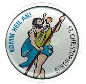 Diese "Christophorus-Plakette" ist ein hochwertiger Doming-Aufkleber auf Silberfolie: Besonders als Geschenk zum Führerschein oder zur Urlaubszeit von pastoralen Mitarbeitern oder Religionslehrern geeignet. Durchmesser: 4 cm