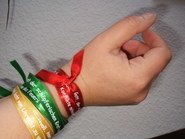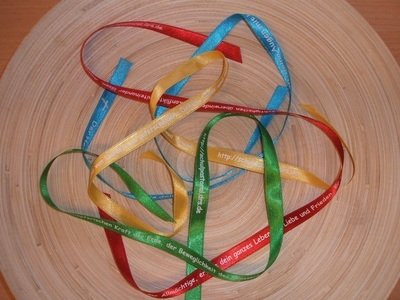 Gelbes Gebetsbändchen mit weißem Aufdruck: