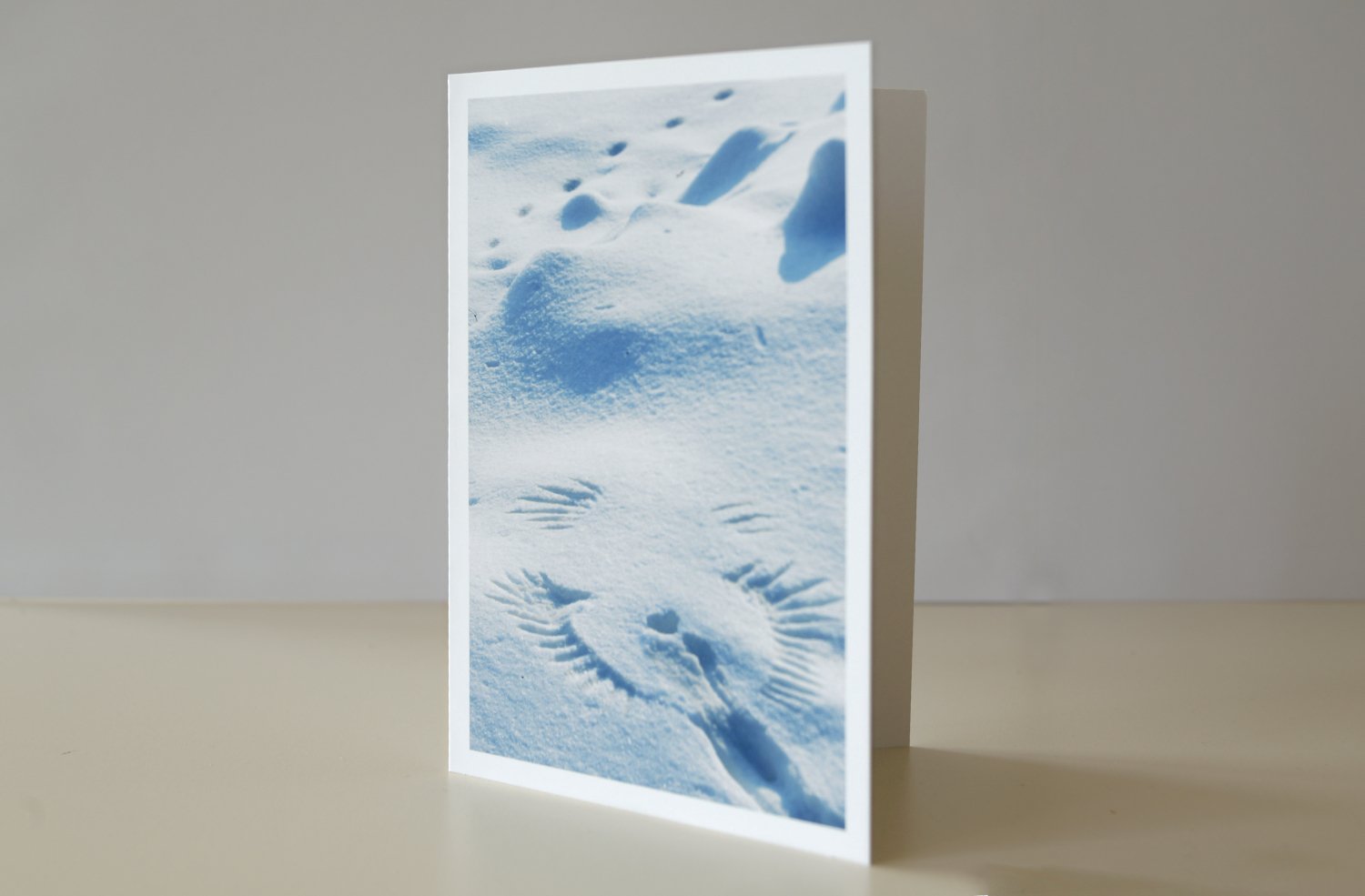 Vieles ist flüchtig, doch jeder Mensch hinterlässt Spuren. Die Klappkarte "Schneeengel" aus der Blankoserie verzichtet bewusst auf einen Begleittext. Sie eignet sich daher für viele Anlässe: Für Kinder, die das Spiel mit den Flocken lieben, als Weihnachtsgruß oder zum Danke sagen am Jahresende für liebe MitarbeiterInnen, die "engelsgleich" sich engagieren.