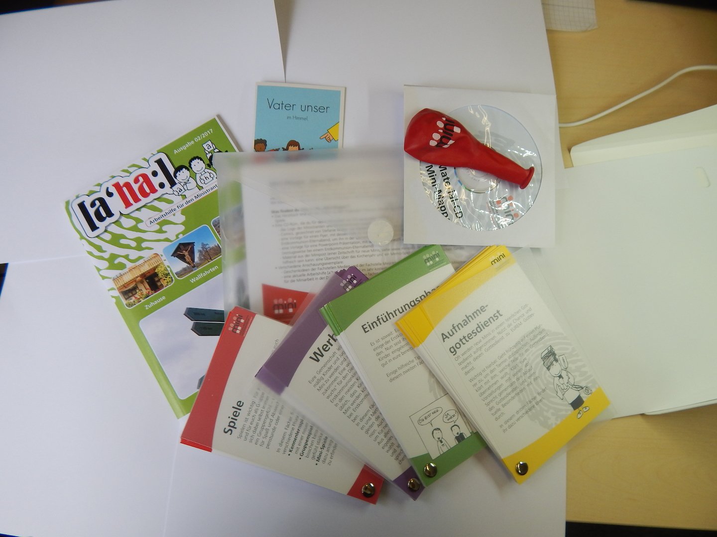 Vier Fächer zu den Themen Werbung, Einführung neuer Minis, Aufnahmegottesdienste und Spiele, eine CD mit Mini-Comics, dem Logo, diverse Vorlagen und weiteres Material.